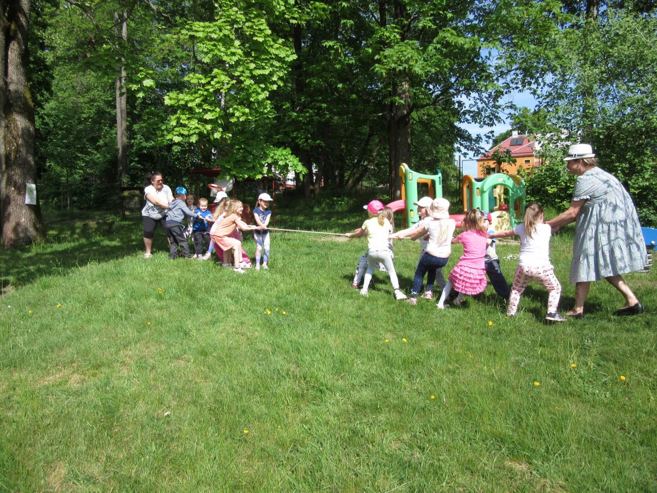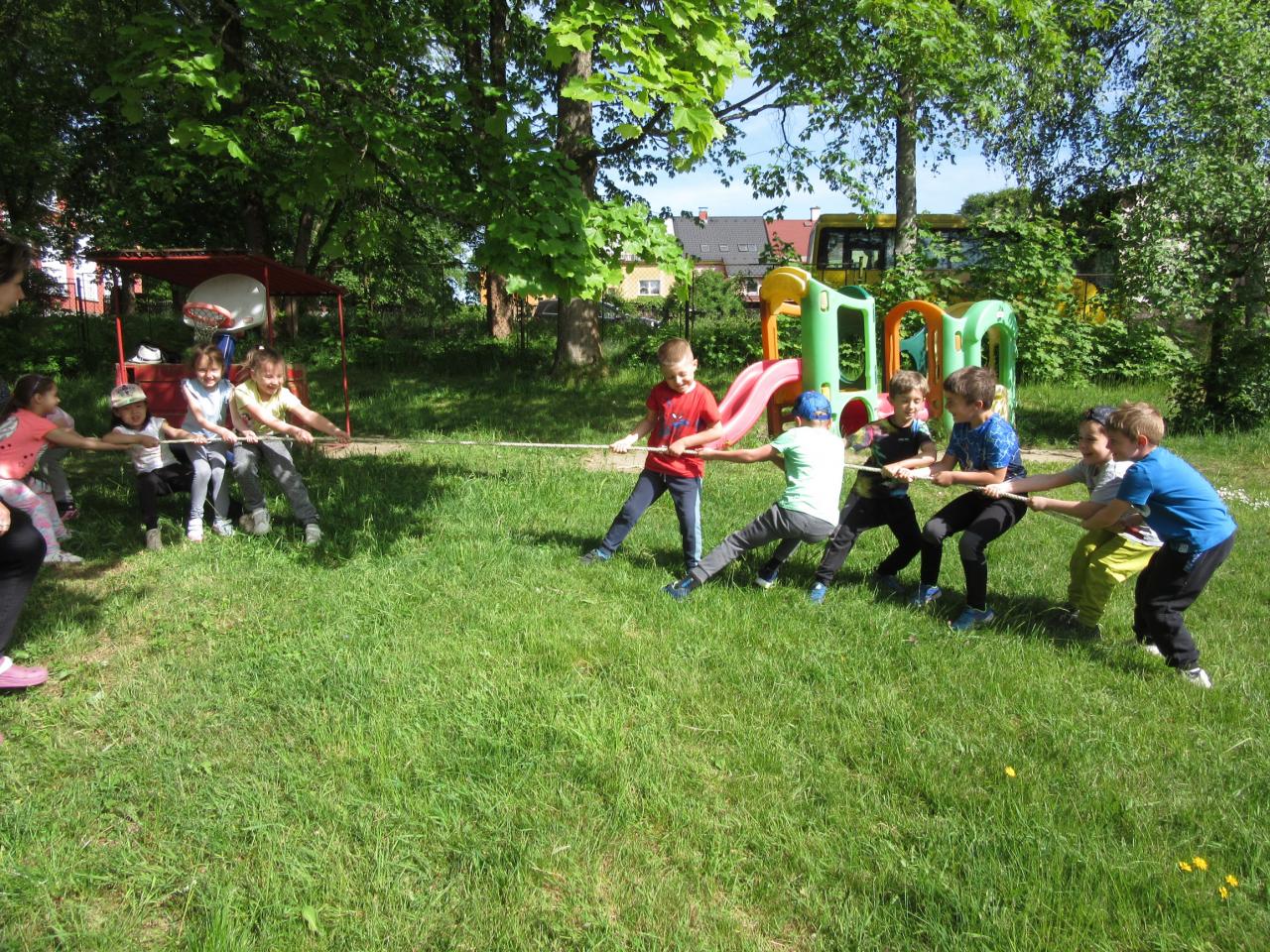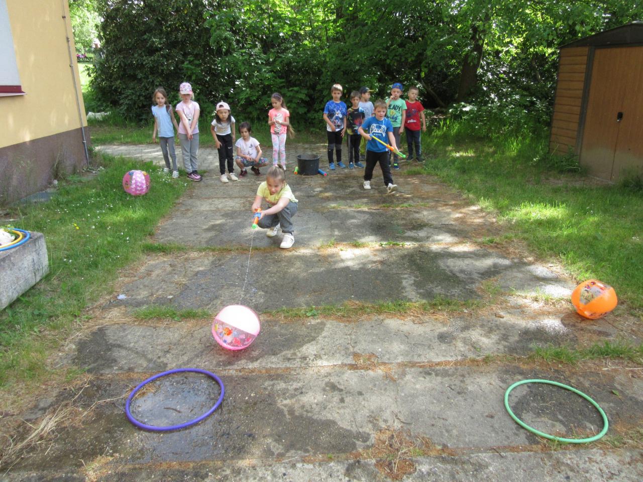 Ve čtvrtek 1. 6. jsme s dětmi slavili a to Mezinárodní den dětí. Připomněli jsme si, že slaví svůj svátek děti z celého světa. Připravili jsme na naší školní zahradě pro děti mnoho soutěží - například skákání v pytli, střelbu vodní pistolí na nafukovací míč, štafetu s nafukovacím kruhem, přetahovanou s lanem, zdolávání překážkové dráhy, zatloukání hřebíků, prolézání lanovou stezkou, nalévání a přelévání tekutiny..... Nechyběl ani tanec na dětské známé písničky. Po závěrečném vyhlášení přišla i sladká odměna - nanuk. Byla to prostě jedním slovem SUPER AKCE.