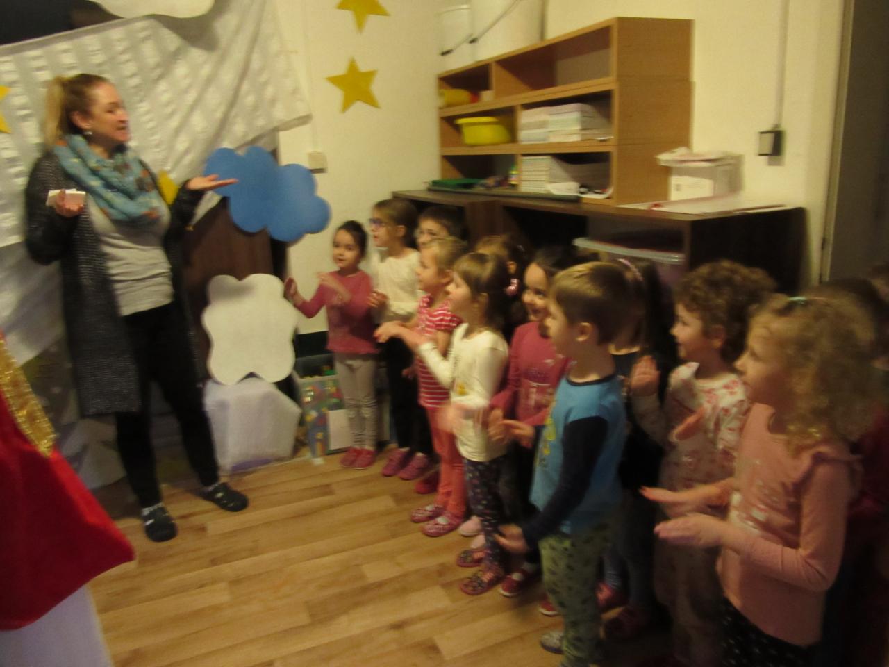 DNES SE OTEVŘELY BRÁNY PEKLA A V NAŠEM SKLEPENÍ SE OBJEVIL SÁM PÁN PEKEL - LUCIFER. DĚTI MUSELY SPLNIT TŘI ÚKOLY A POTÉ MOHLY ODEJÍT DO "NEBE" ZA MIKULÁŠEM. PO ZAZPÍVÁNÍ DOSTALI VŠICHNI DROBNÉ DÁREČKY.