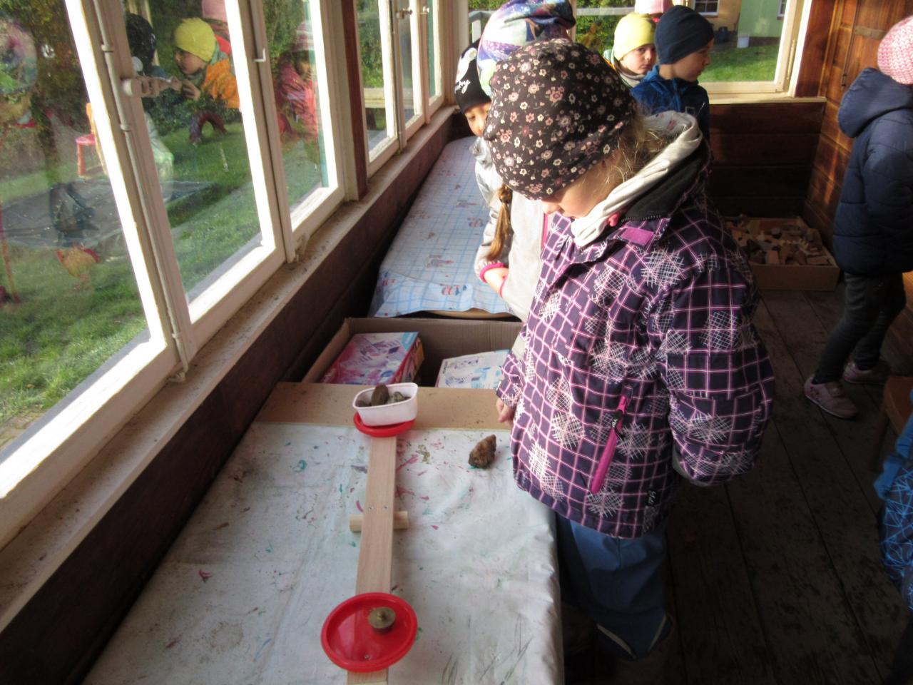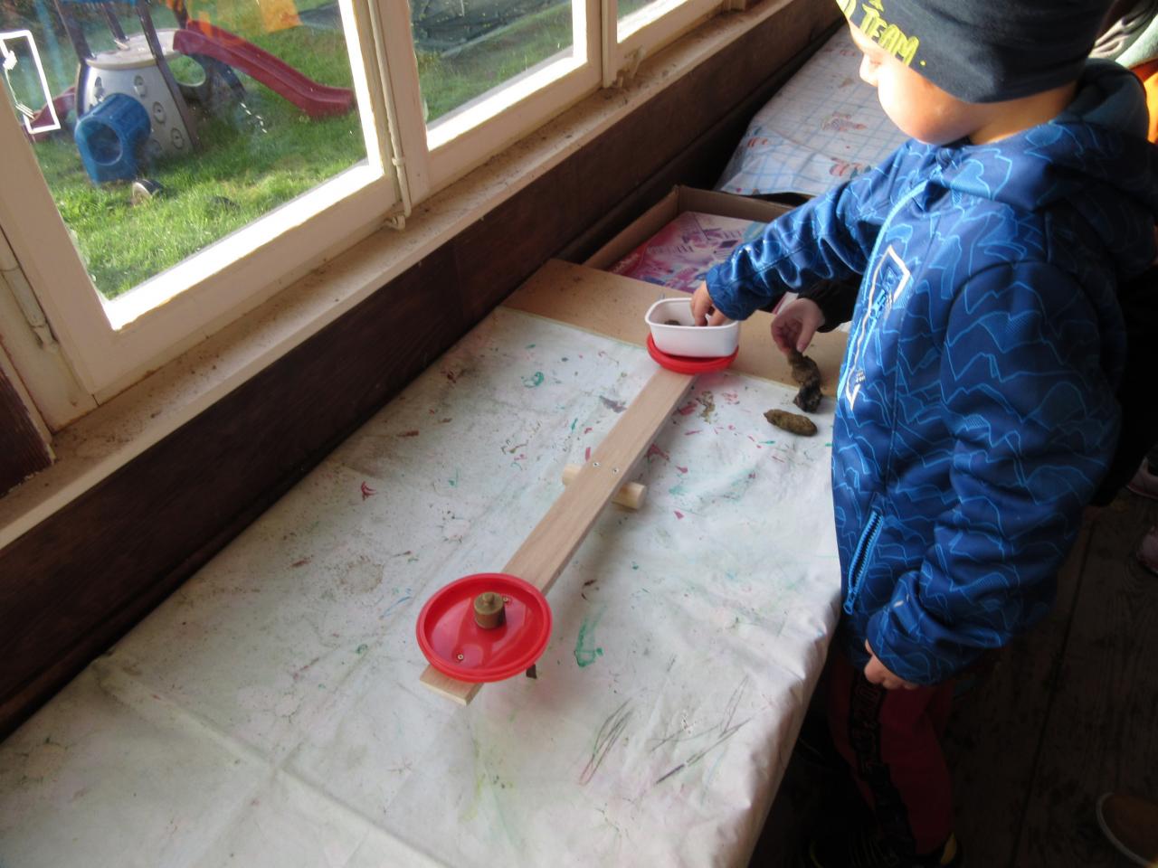 OPĚT JSME VYUŽILI UČEBNY V ZAHRADNÍM ALTÁNU, KDE SI DĚTI PRAKTICKY OVĚŘOVALY VÁHY, MÍRY, ODHAD A SLUCHOVÉ DOVEDNOSTI