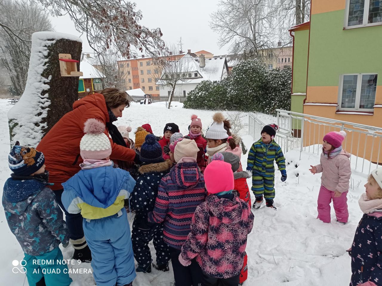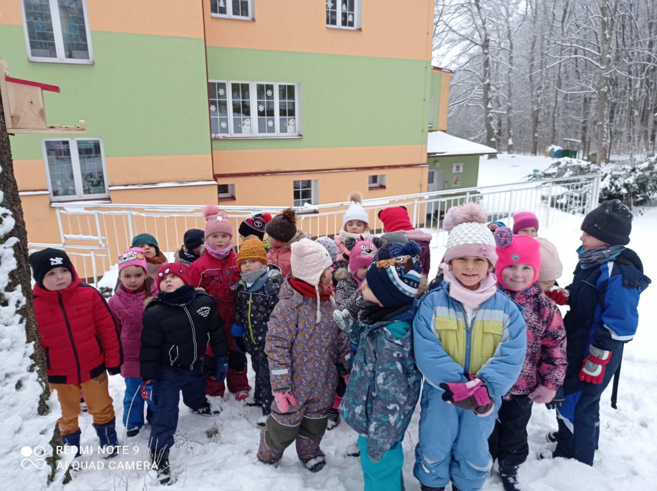 Konečně napadl sníh a s ním spousta povídání o zimě a zvířátkách. Ptáčci již na naší školní zahradě mají zázemí – krmítko, které pravidelně doplňujeme. Nyní přibylo také krmítko pro veverky, které vídáme běhat po okolních stromech i panelácích – chodí tam na dobroty pro ptáčky. Třídy motýlků a sluníček, v rámci projektového týdne „Zvířátka v zimě“, slavnostně připevnily a naplnily speciální krmítko pro veverky na školní zahradě. Dobrou chuť, veverky!