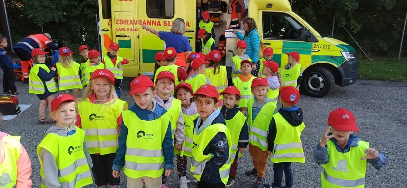 V pátek 15. září se v Parku zážitků uskutečnil tradiční Den prevence. Souběžně v areálu HZS a ZZS začal program pro školy. Mottem letošní akce bylo „Jak se bezpečně chovat nejen v našem městě. Umět pomoci druhému člověku a chránit sám sebe“. Děti se seznámily mj. se základy první pomoci. Dozvěděly se, co všechno obnáší práce hasičů. Viděly, kde jsou umístěná hasičská auta a prohlédly si i budovu hasičů. Exkluzivně pro děti z naší MŠ hasič ukázal, jak se klouže z patra po tyči. Na cestu jsme se vybavily červenými kšiltovkami s reflexními samolepkami v rámci projektu Reflexáci.