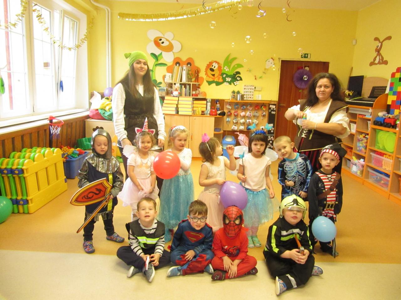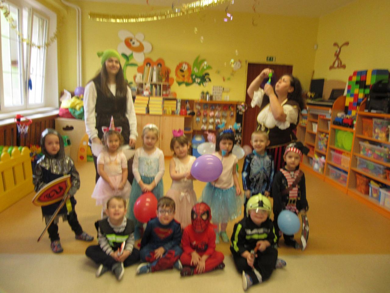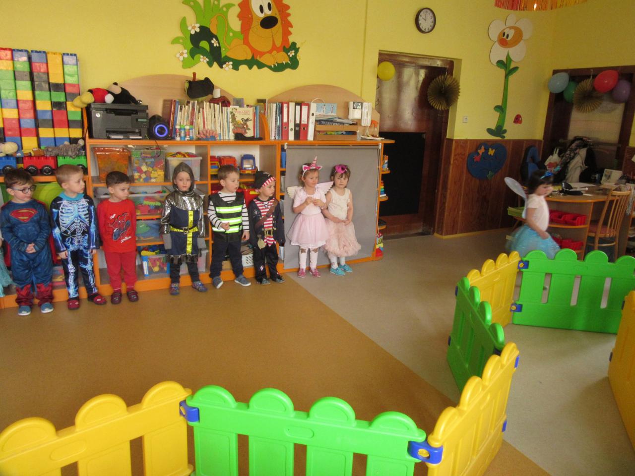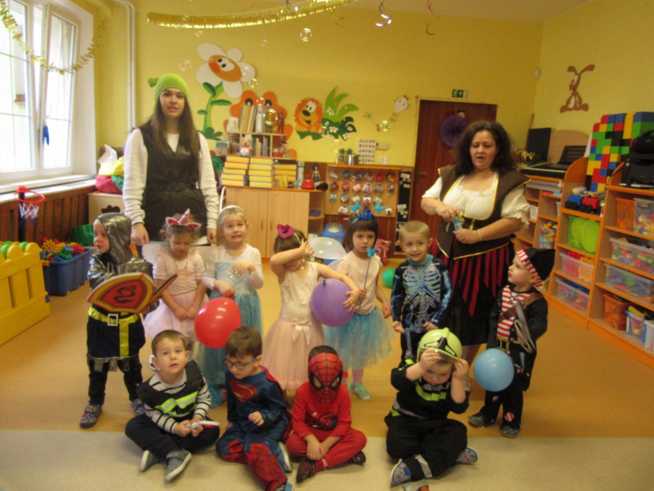 Poslední únorové pondělí byl přesně ten den, na který se všechny děti hrozně moc těší. Celá školka se od rána plnila vílami , princeznami, přišli spidermani, klauni, strážci zákona i s hasiči, ale i loupežníci a piráti,zkrátka zástupce celé pohádkové říše.