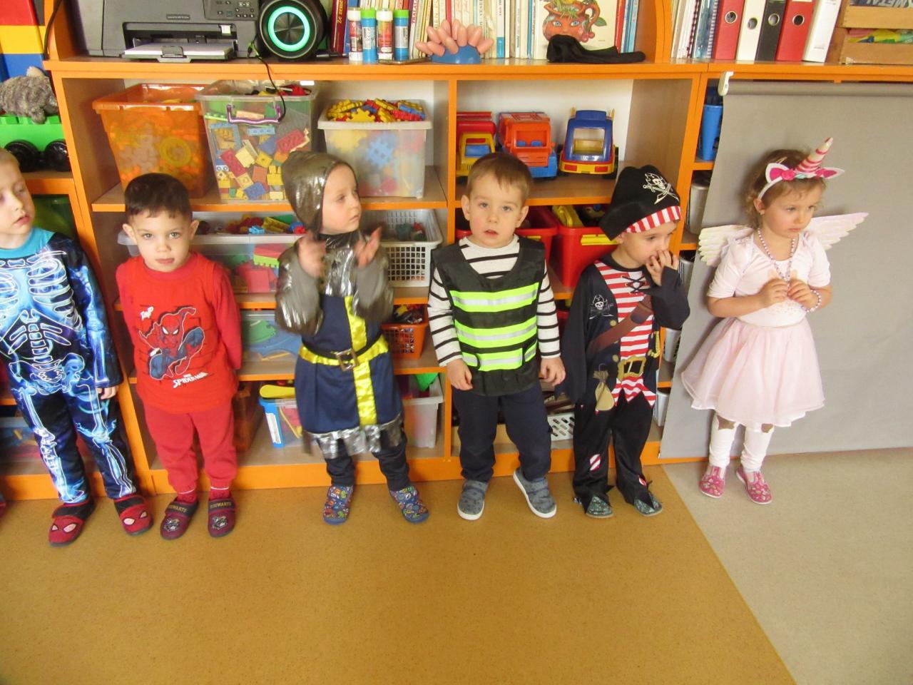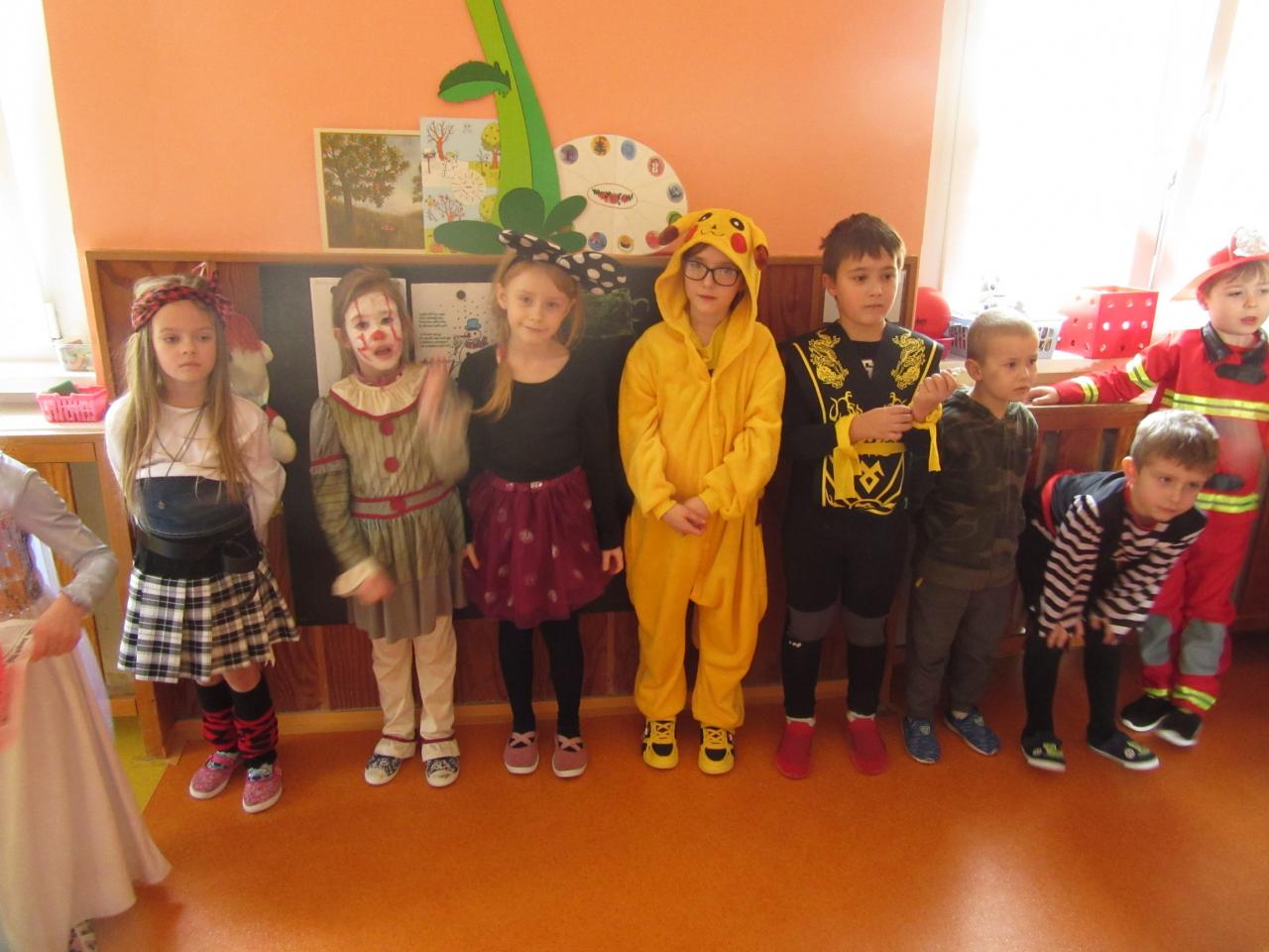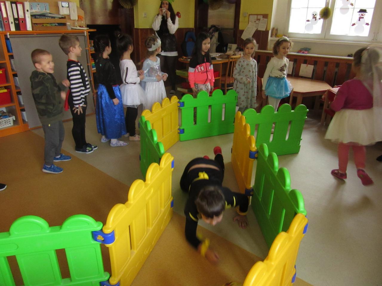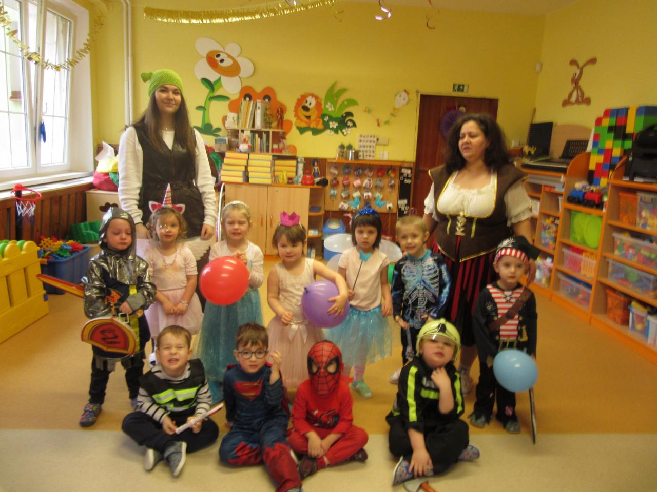 Poslední únorové pondělí byl přesně ten den, na který se všechny děti hrozně moc těší. Celá školka se od rána plnila vílami , princeznami, přišli spidermani, klauni, strážci zákona i s hasiči, ale i loupežníci a piráti,zkrátka zástupce celé pohádkové říše.