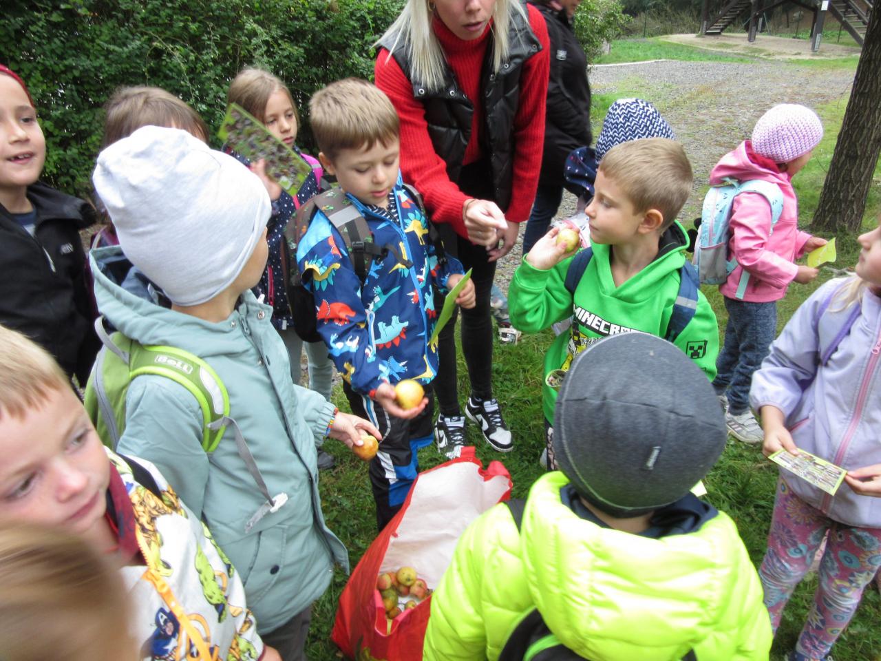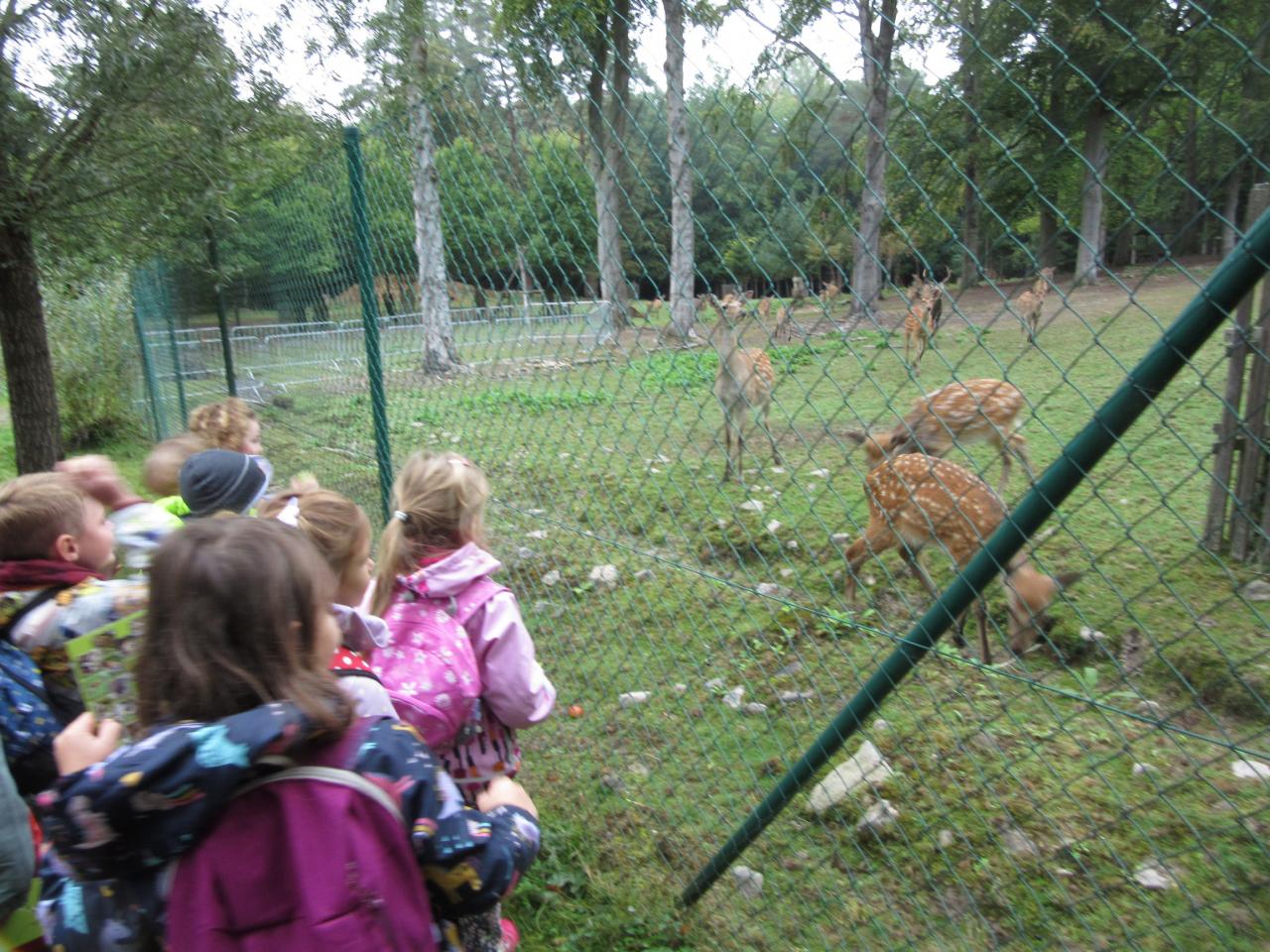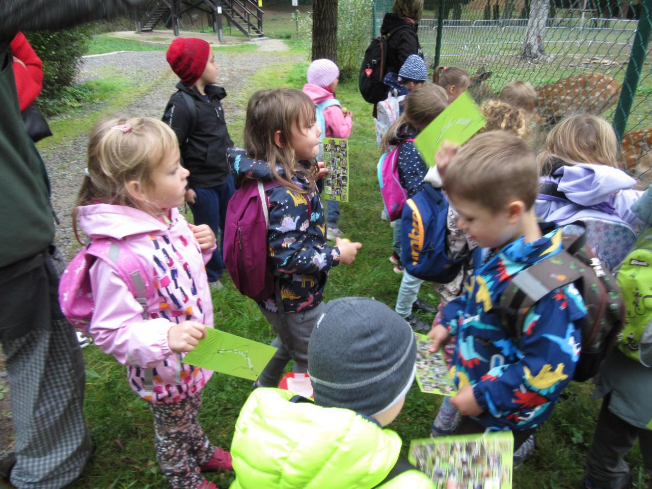 Po příjezdu do lesního centra měly děti možnost u velké obory nakrmit lesní zvířata – jeleny, daňky, malé koloušky.... sladkými jablíčky.